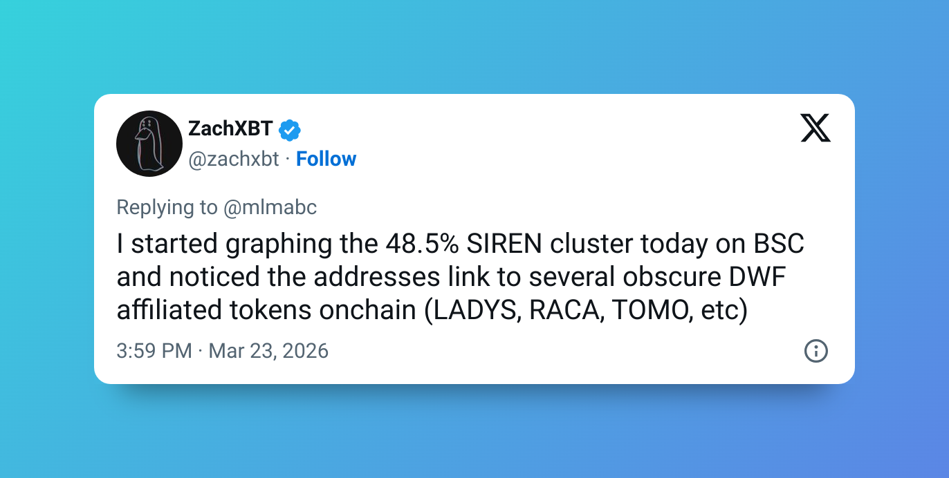 A recent post from ZachXBT suggests ties to DWF affiliated tokens.