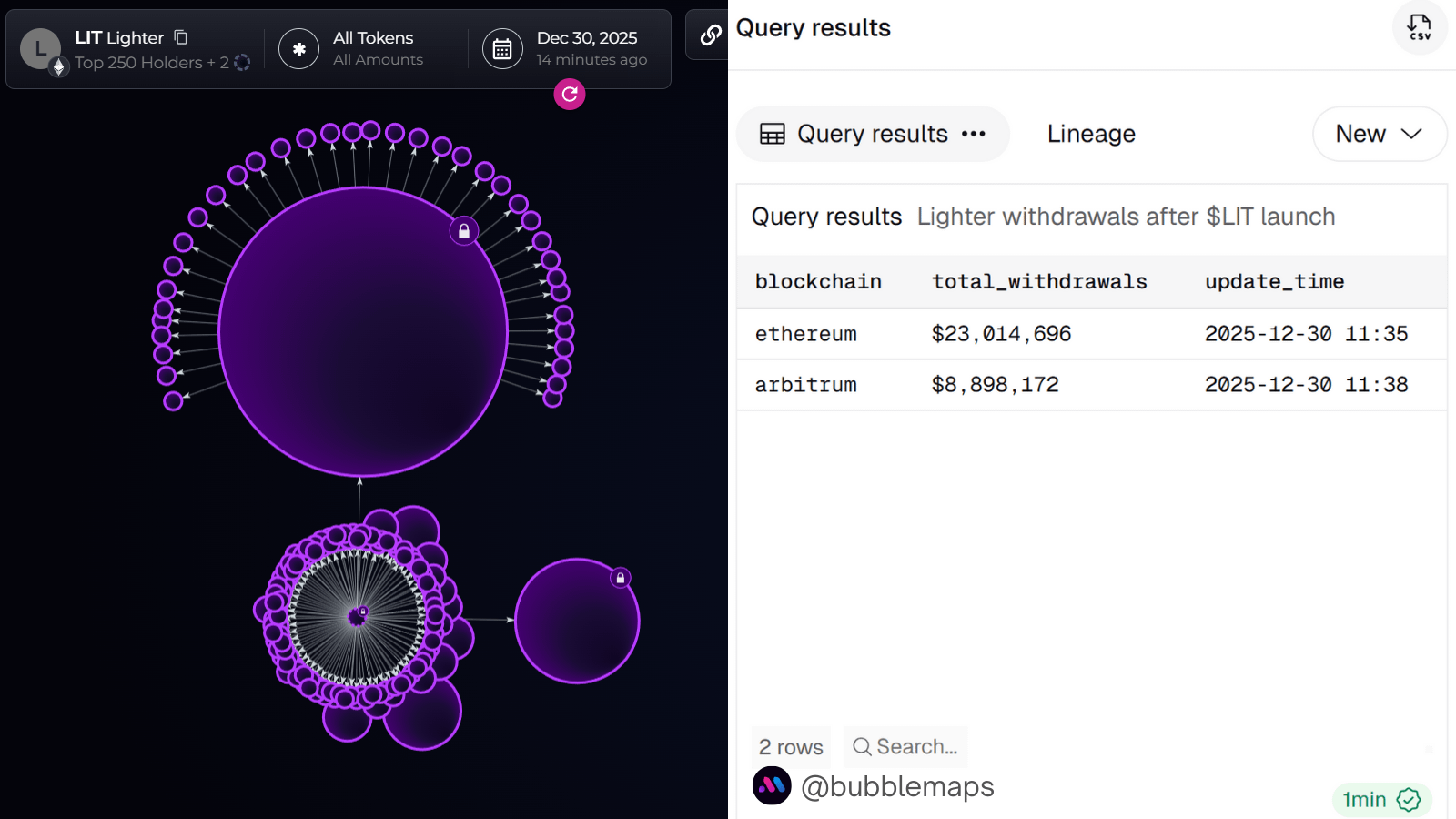 A few days back, $LIT went live with a $275M airdrop. One of 2025's biggest airdrops, 25% of total supply. $30M was withdrawn from Lighter on that day, which is below average for a launch day.