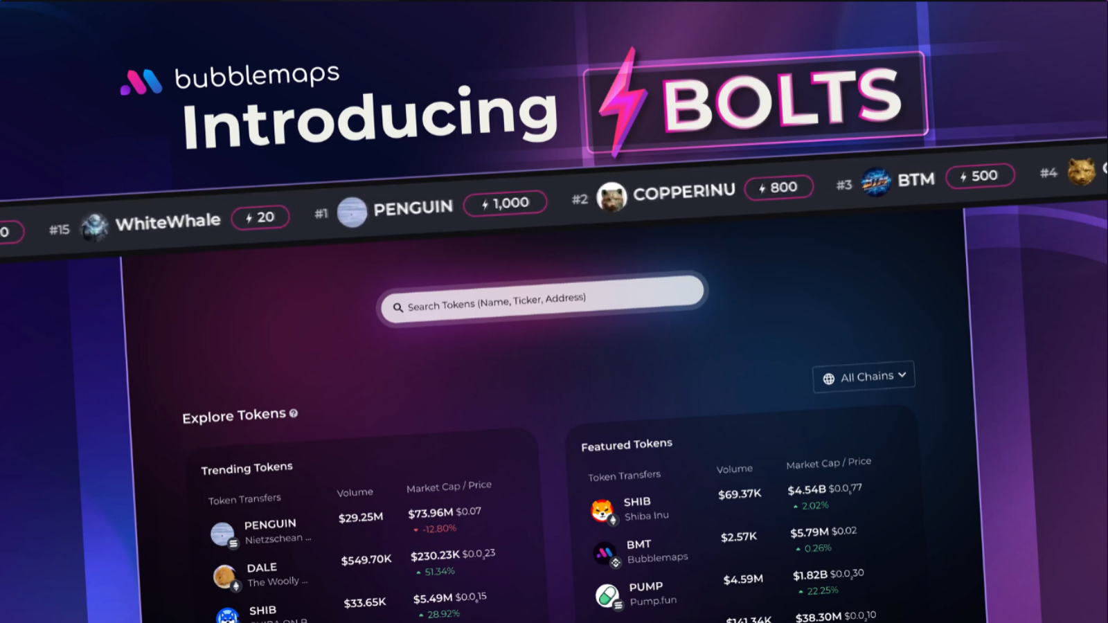With Bolts, you can boost a token’s exposure on Bubblemaps. Make sure it gets the attention it deserves. Plus, use $BMT to get a nice discount!
