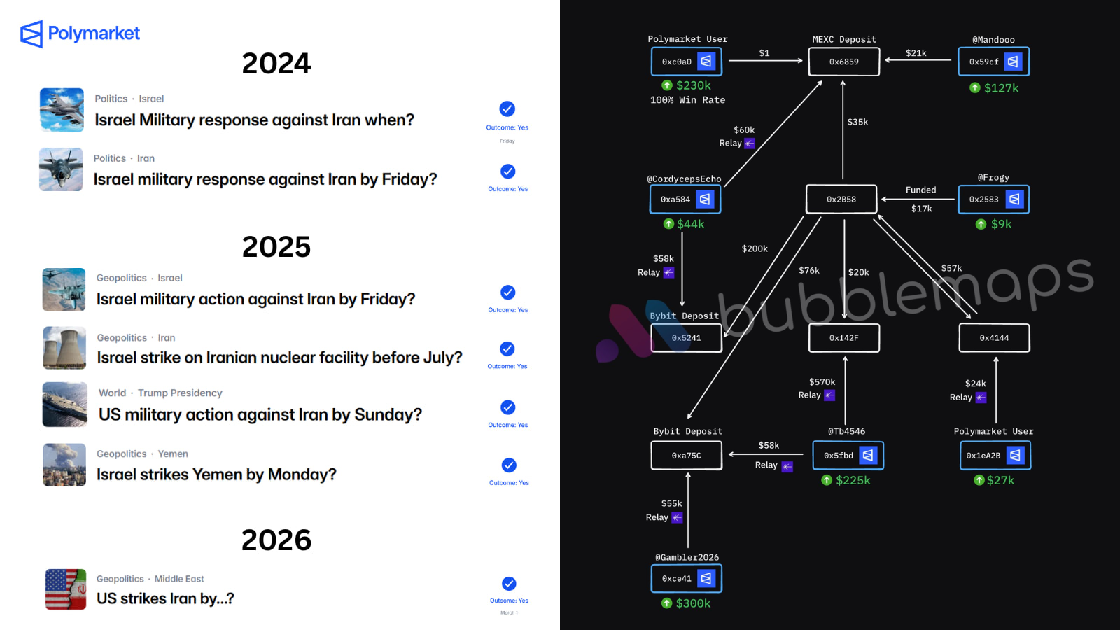 We shared information about an account that made $700k predicting strikes on Iran and then bet another $200k on US troops entering Iran.